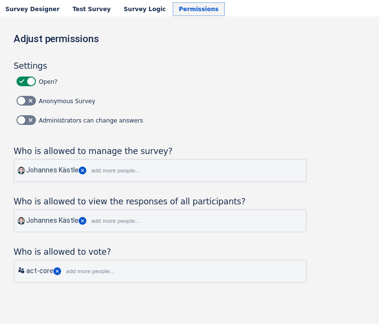 Sometimes, this is not wanted, e.g., for feedback. Then, you can mark a survey as anonymous.