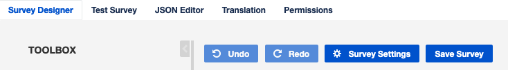 When editing a survey, several tabs are displayed at the top of the page