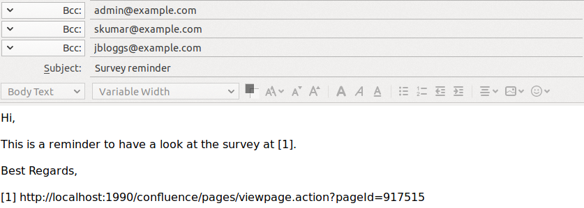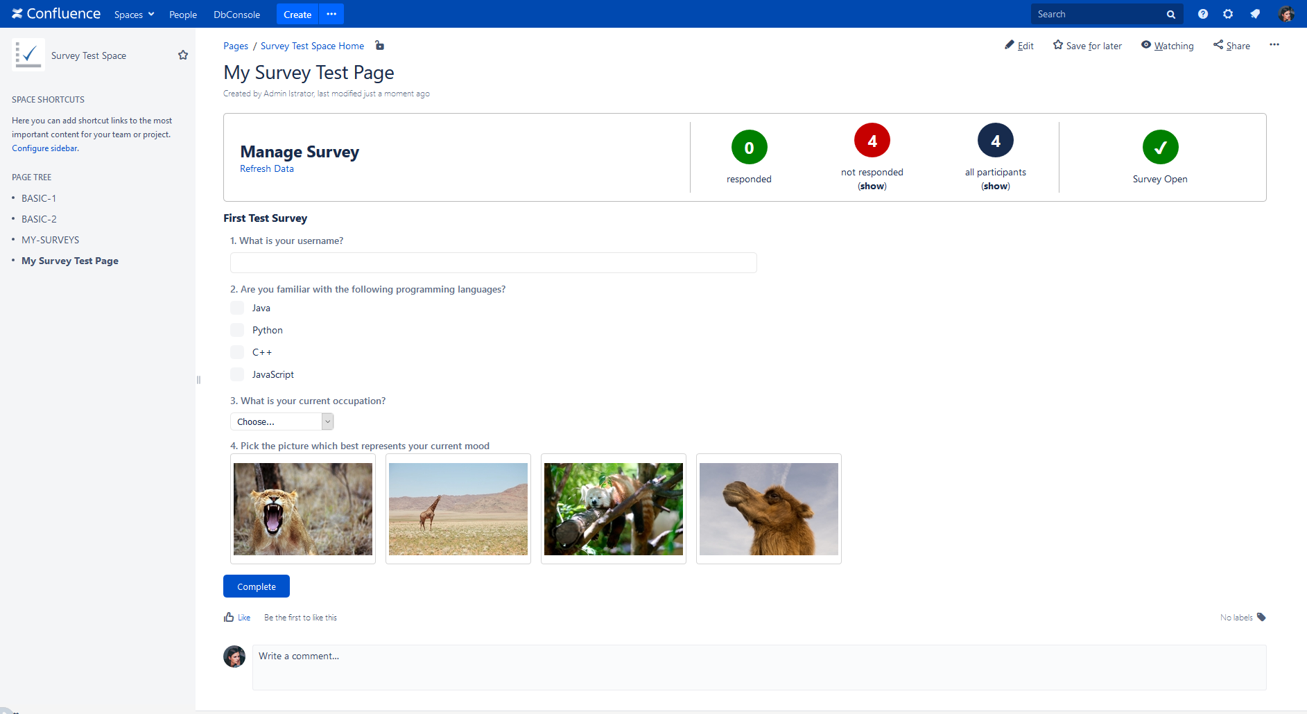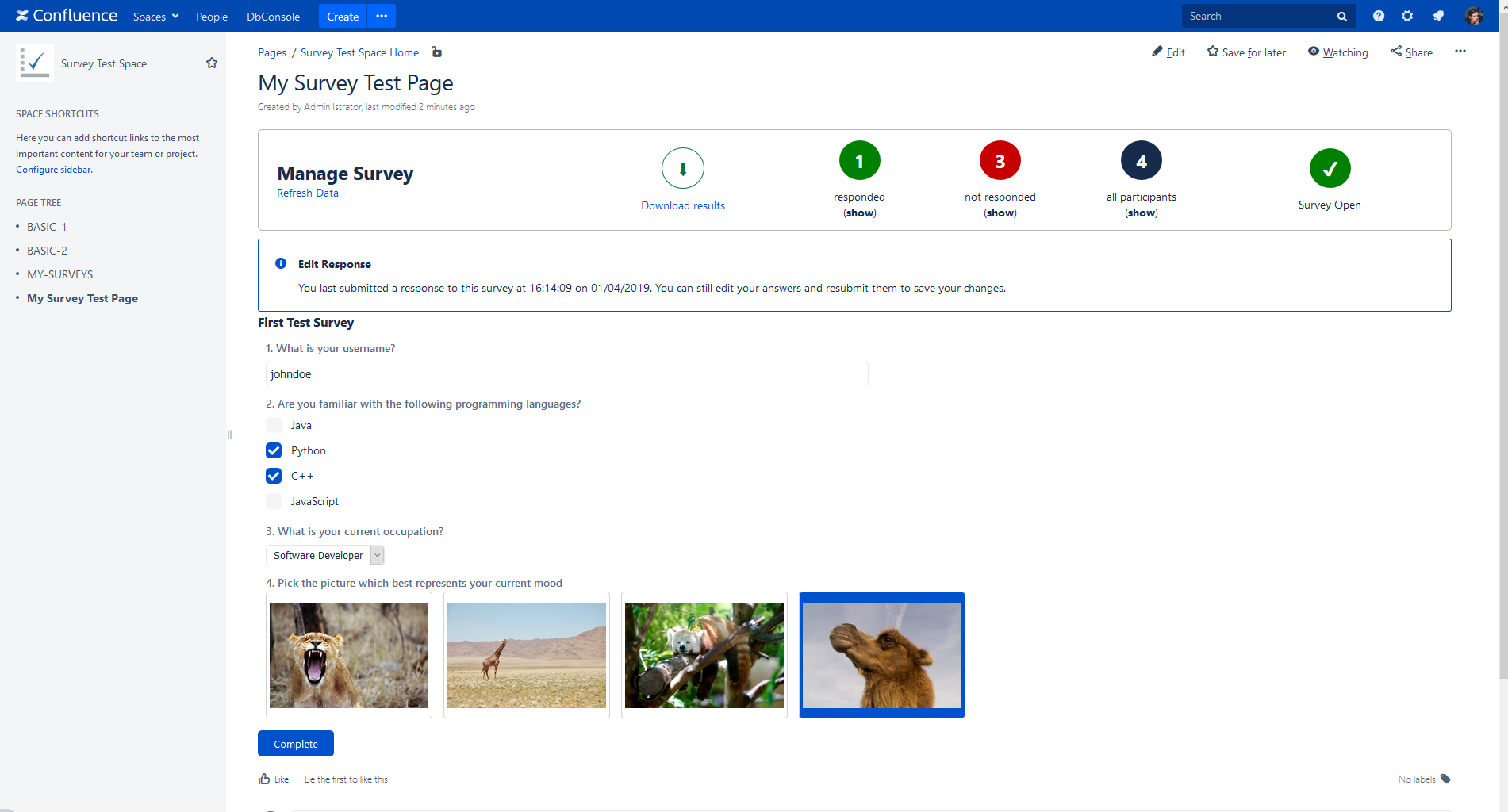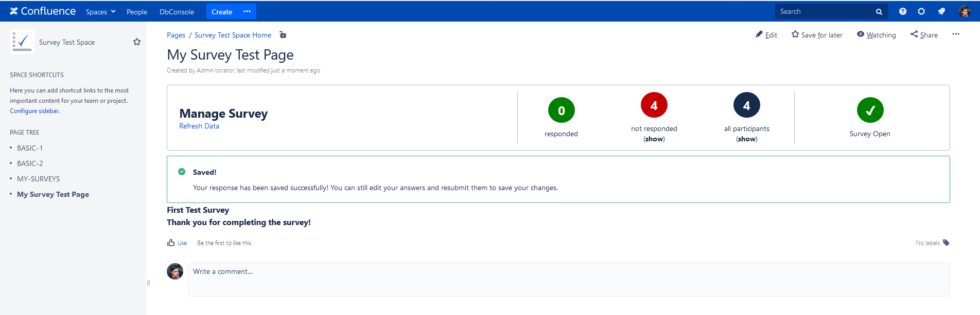 After you have finished editing the rest of the Confluence page, you can click "Publish". You can now see your survey on the published page.