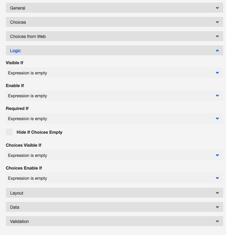 In the "Logic” menu on the right, conditions for the visibility may be set.