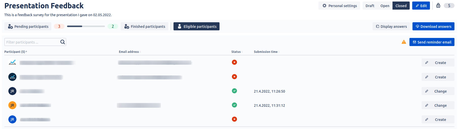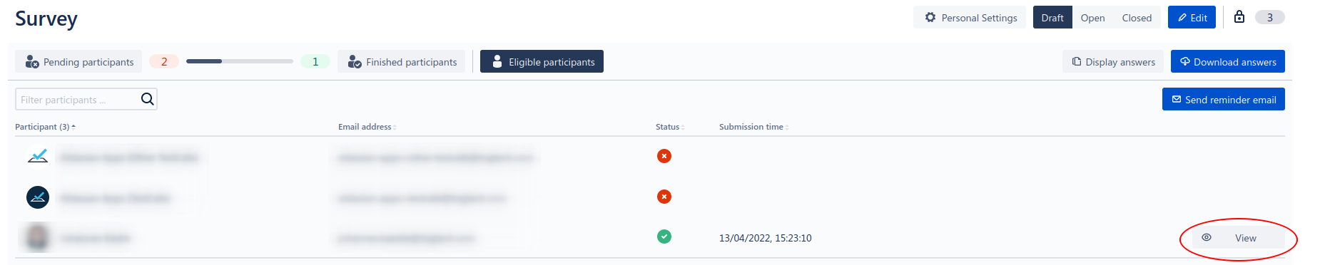 Send an email to pending participants to remind them to take part in the survey