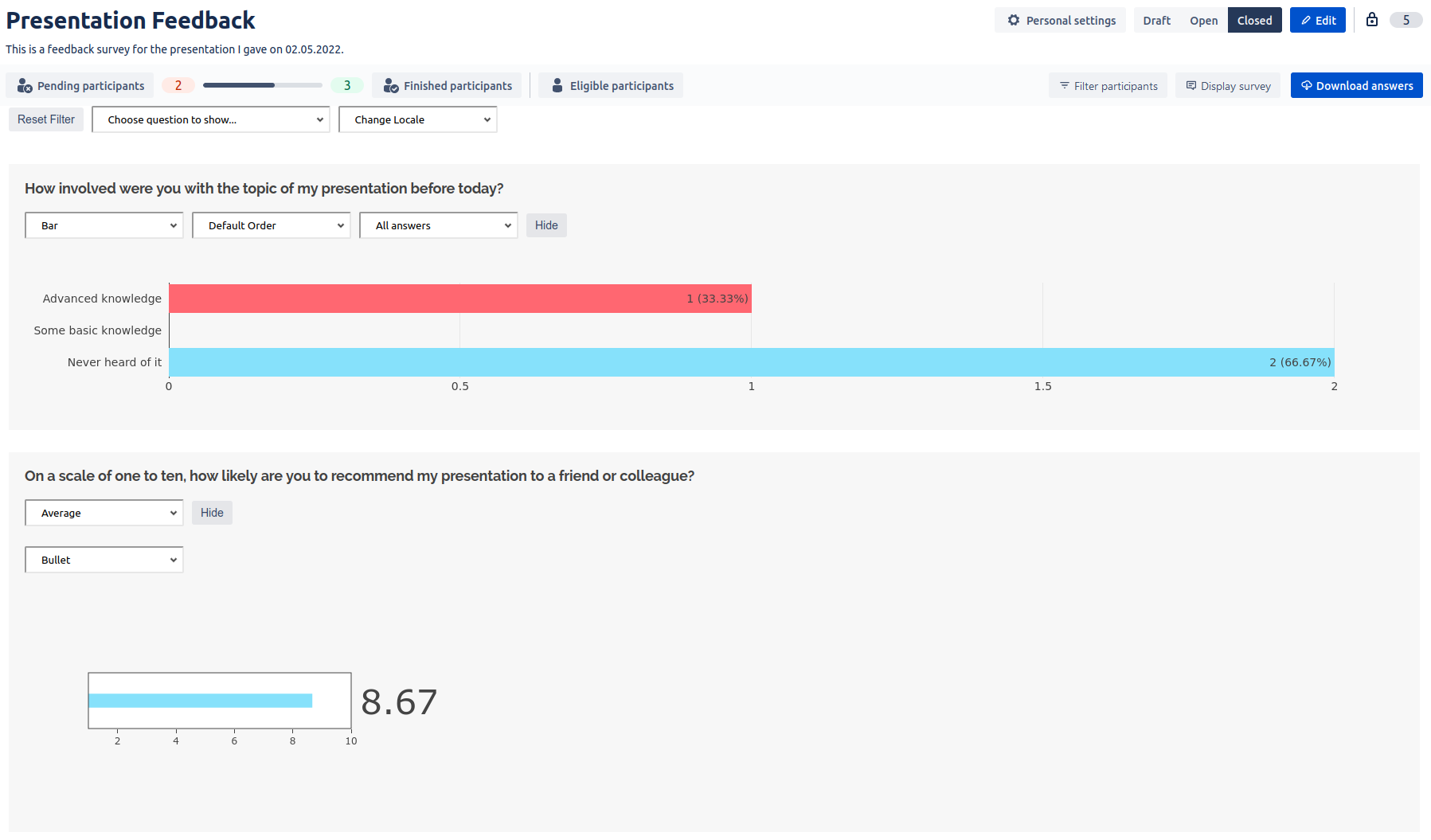 A survey analyst is also able to filter participants by clicking on the filter participants button.