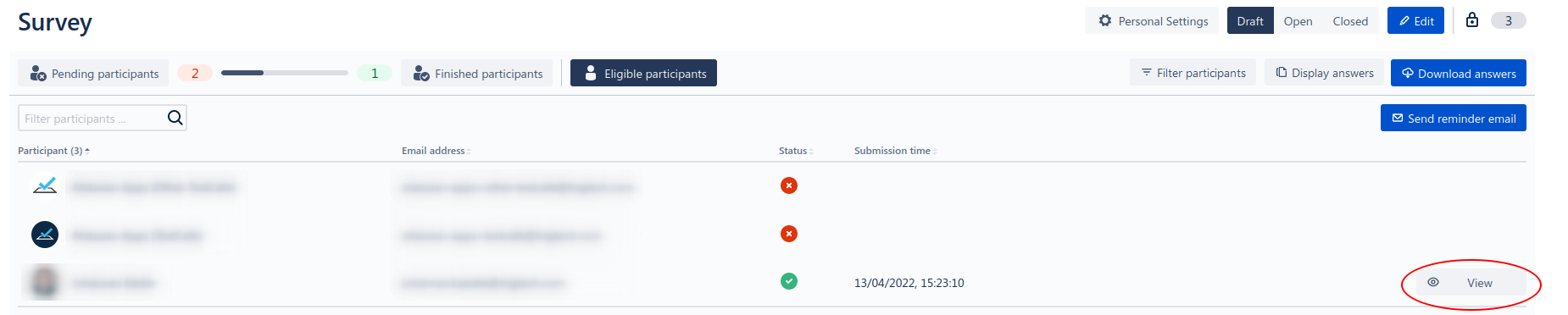 Send an email to pending participants to remind them to take part in the survey