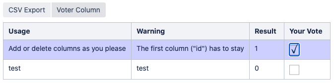 Navigate to a page containing a Multivote macro and click the “Voter Column” button to toggle the voter column.