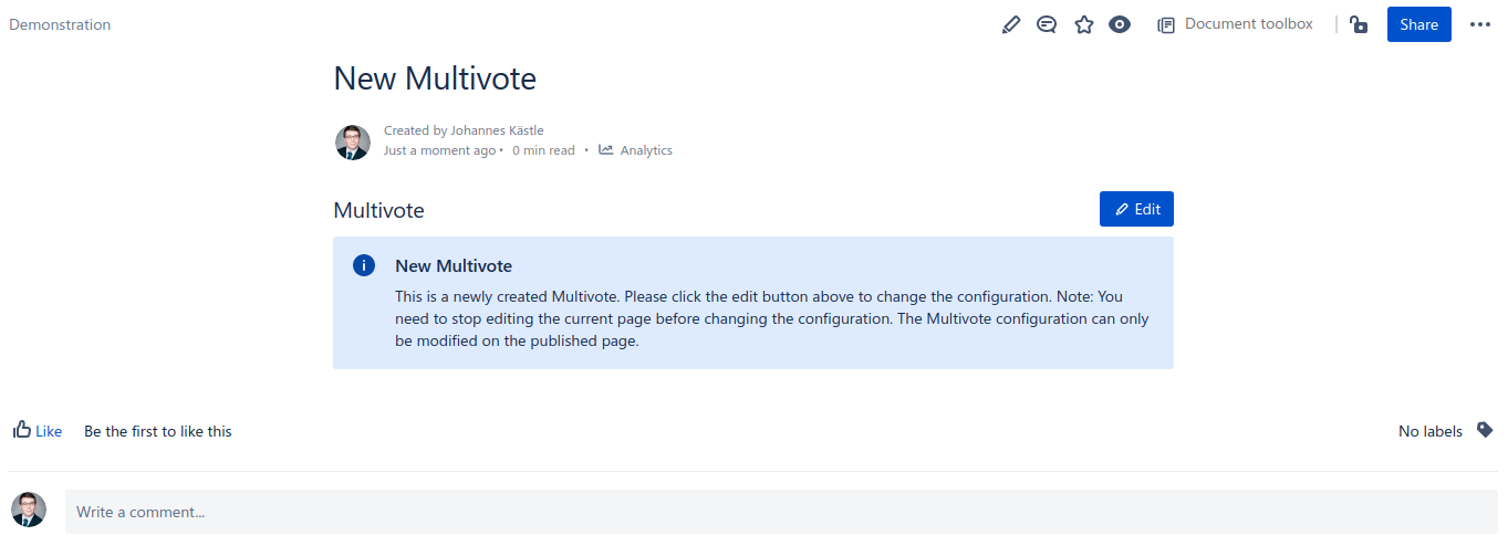 You will now be able to edit your Multivote in the view mode of the page (cf. Add options to a Multivote)
