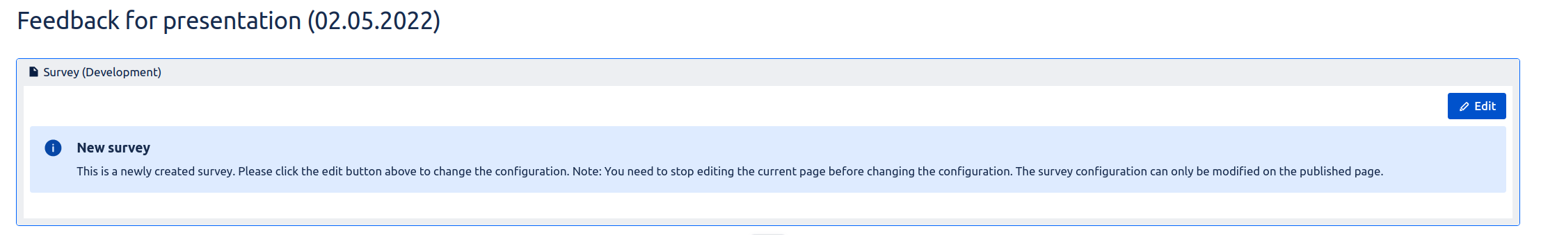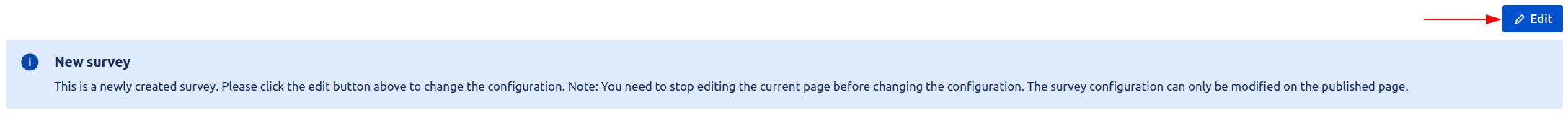 Click on Edit on the published version of the page. This will then open the Survey Creator.