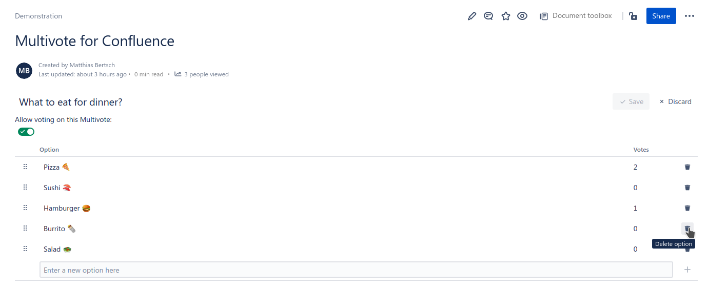 Click the trash icon next to an option to delete it from the Multivote.