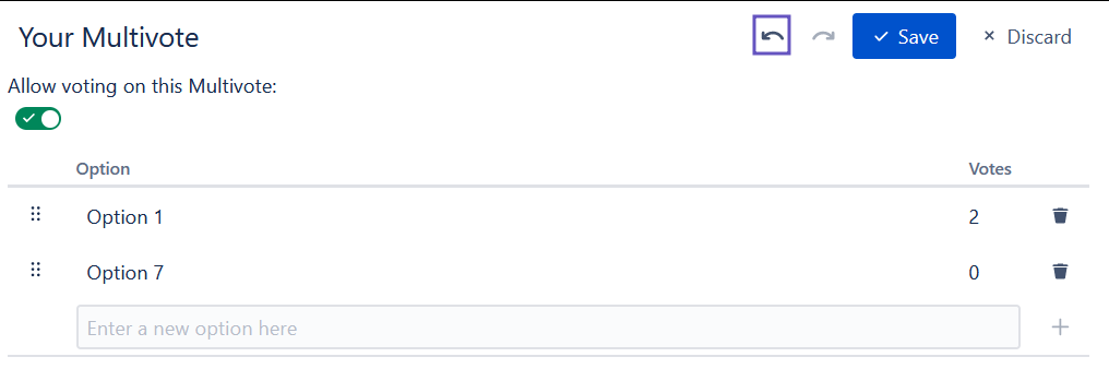 Undo the last performed action by clicking the undo button on top of the Multivote using the keyboard shortcut (