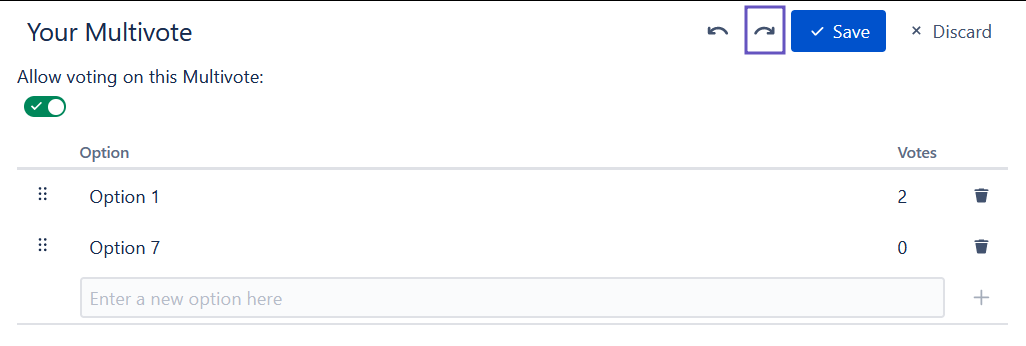 Redo the last undone action by clicking the redo button on top of the Multivote or using the keyboard shortcut (