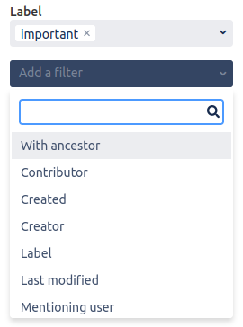 You can filter the displayed Surveys by selecting labels. If the “important” label is selected, only Surveys on pages with the “important” label are shown.