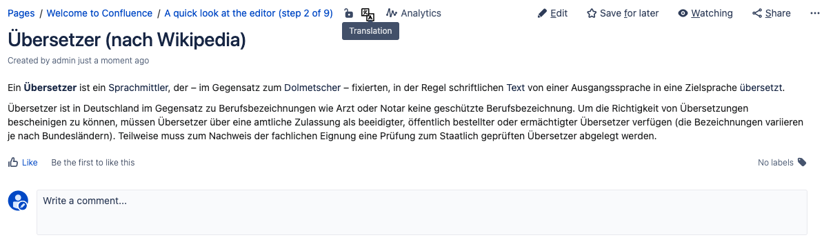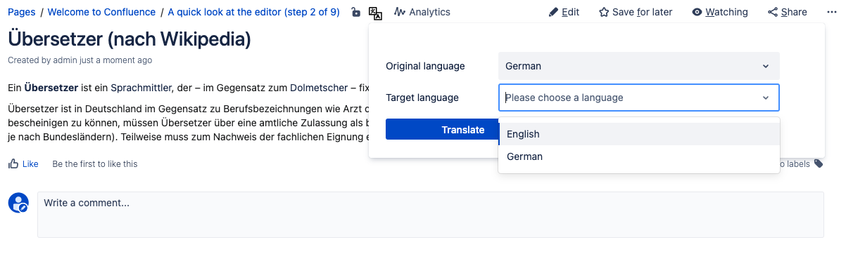 Translate a Confluence Page
