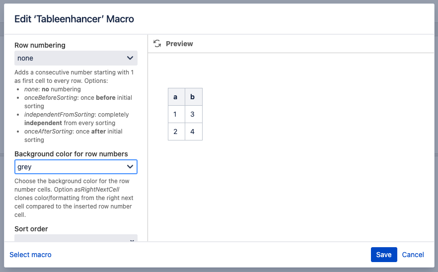 Edit the page, click on the Table Enhancer macro and click on “Edit” to add row numbering to a Table.