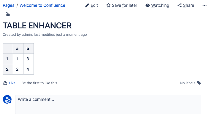 Visit a page containing a Table Enhancer macro. Click on “Edit” to go to the edit mode of the page.