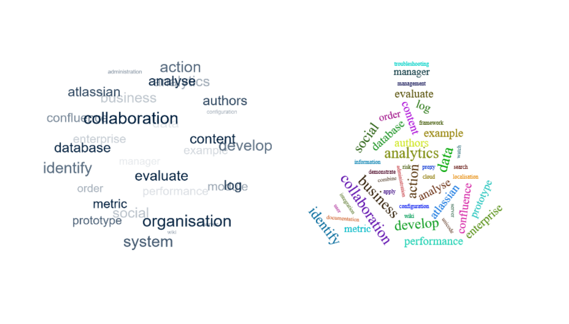 New Tags menu items are available in the Space Sidebar and in the Global Navigation (Confluence header). These actions exceed just static tag clouds: Users can set different filters and options to generate and visualise individual tag clouds.